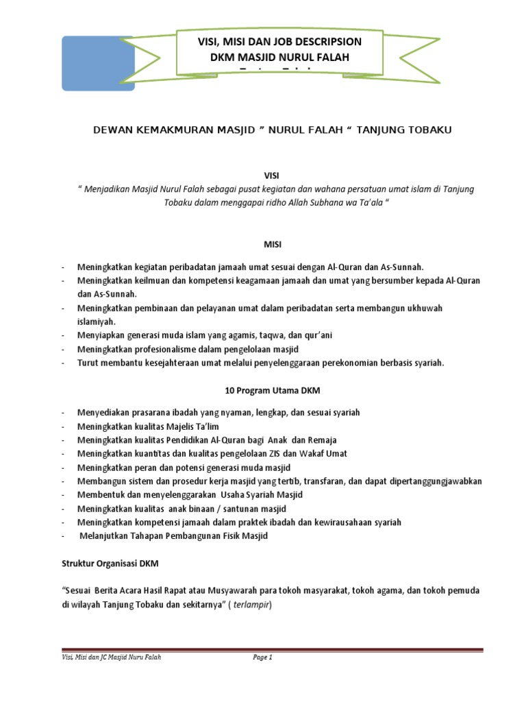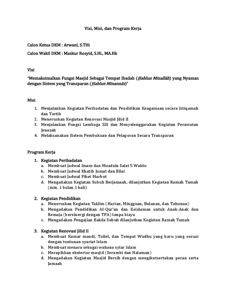 Memimpin organisasi DKM Al-Anshor. Menerapkan pengelolaan masjid yang. 16 rows Visi Misi dan Renstra.